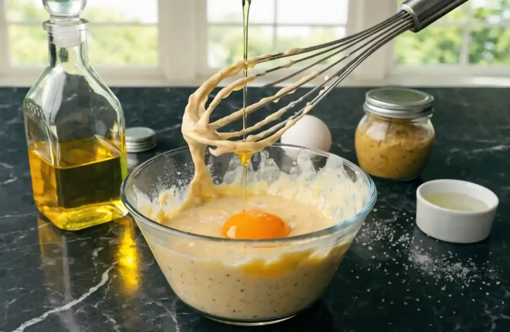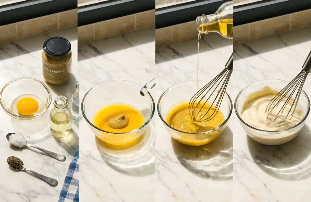 Pour réussir cette version minimaliste, la qualité de l’émulsion est encore plus cruciale. En l’absence des propriétés liantes de la moutarde, vous devez être extrêmement vigilant sur l’incorporation de l’huile. Commencez par fouetter le jaune d’œuf avec le sel jusqu’à ce qu’il blanchisse légèrement, puis commencez l’ajout de l’huile goutte après goutte. Ce n’est qu’une fois que le “noyau” de l’émulsion est formé et ferme que vous pourrez verser l’huile en un mince filet continu.