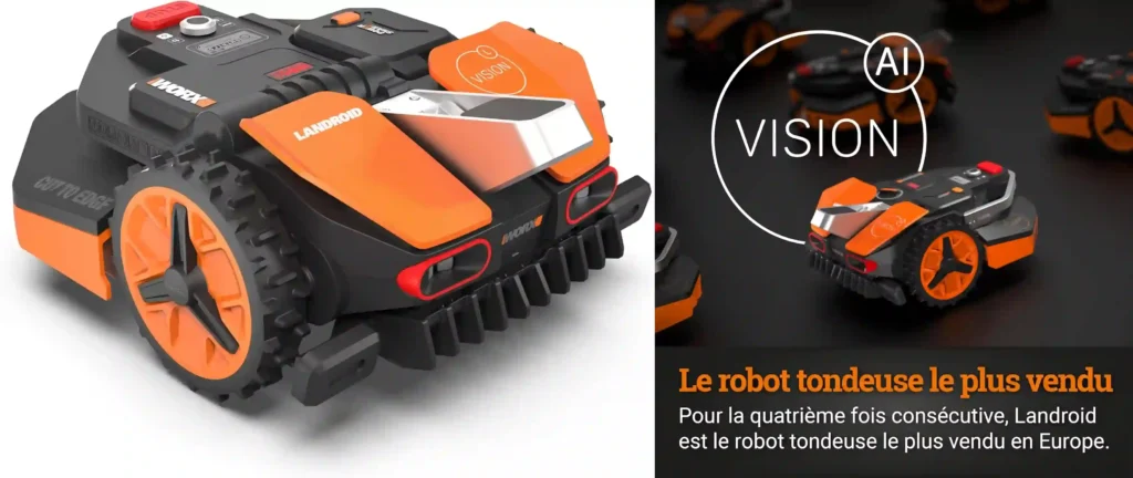 Le WORX Landroid Vision s’impose comme une révolution dans l’univers des robots tondeuses. Grâce à sa caméra 4K et son intelligence artificielle, il navigue sans aucun fil périphérique. Imaginez : vous le sortez de sa boîte, il cartographie votre jardin en un seul tour et se met au travail. Fini les installations fastidieuses et les câbles à enterrer.