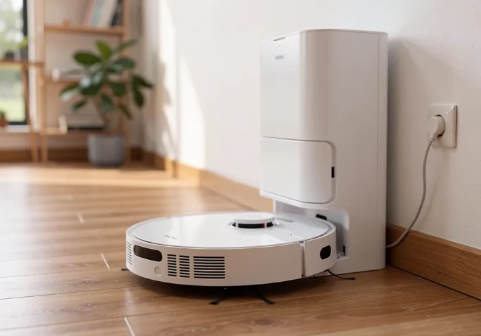 L’autre atout majeur est sa station tout-en-un entièrement automatisée. Non seulement elle recharge le robot, mais elle vide aussi automatiquement son bac à poussière dans un grand sac de 3,2 L, offrant jusqu’à 75 jours de tranquillité. De plus, la station lave les serpillières rotatives à l’eau propre et les sèche ensuite à l’air chaud, prévenant ainsi le développement de bactéries et de mauvaises odeurs. Cette autonomie complète est un véritable luxe au quotidien.