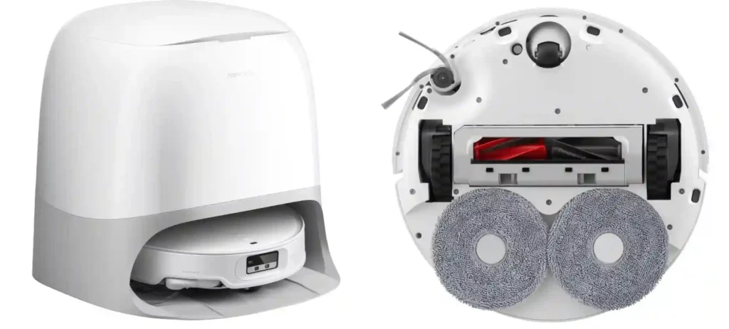 La station d’accueil multifonctionnelle 3.0 Hygiene+ est le cerveau de l’opération, rendant l’entretien du Roborock Qrevo Curv 2 Pro presque entièrement “mains libres”. Elle ne se contente pas de recharger le robot. Elle gère un cycle complet d’entretien pour assurer des performances optimales sur le long terme. Le processus commence par le lavage automatique des serpillières rotatives à l’eau bouillante, comme mentionné précédemment, pour une propreté parfaite.